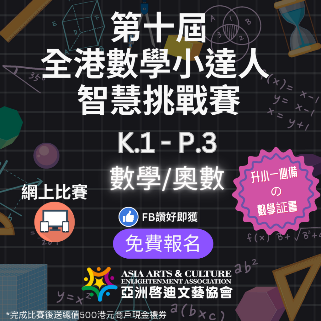 這項面向全港十八區小朋友的數學競賽,旨在通過互聯網的便捷性,讓更多數學愛好者能夠輕鬆參與,展現自己的數學才華。