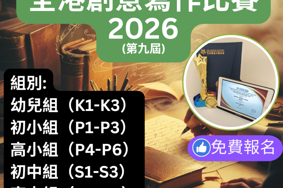 這是一個針對幼兒、初小、高小、初中和高中的創意寫作比賽,旨在鼓勵孩子們發揮他們的想像力和寫作能力。參賽者需要網上提交一篇短文,主題可以是童話故事、科幻故事或是他們自己創作的故事。