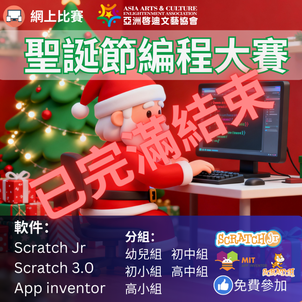 Hey,未來的程式設計師們!歡迎參加聖誕節創意編程大賽2025 – 透過動畫或遊戲項目「互動式的聖誕節慶祝活動」,與您的家人或摯愛一同分享美好時刻。創作一個令人難忘且呈現您與家人之間難以忘懷的回憶的項目。讓我們珍惜每一刻!