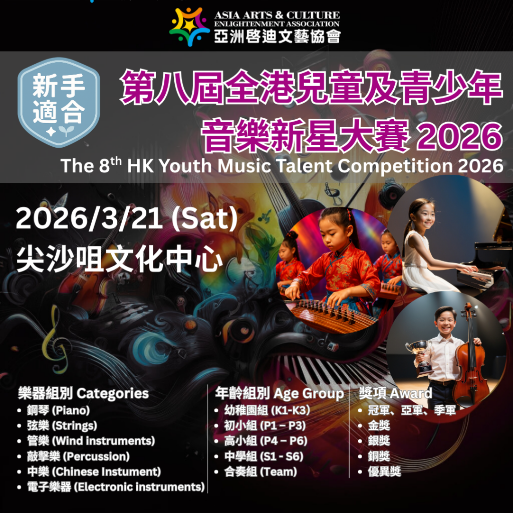 - 於比賽當日(2026-3-21)指定時間到 尖沙咀文化中心活動室 GR1準時報到。